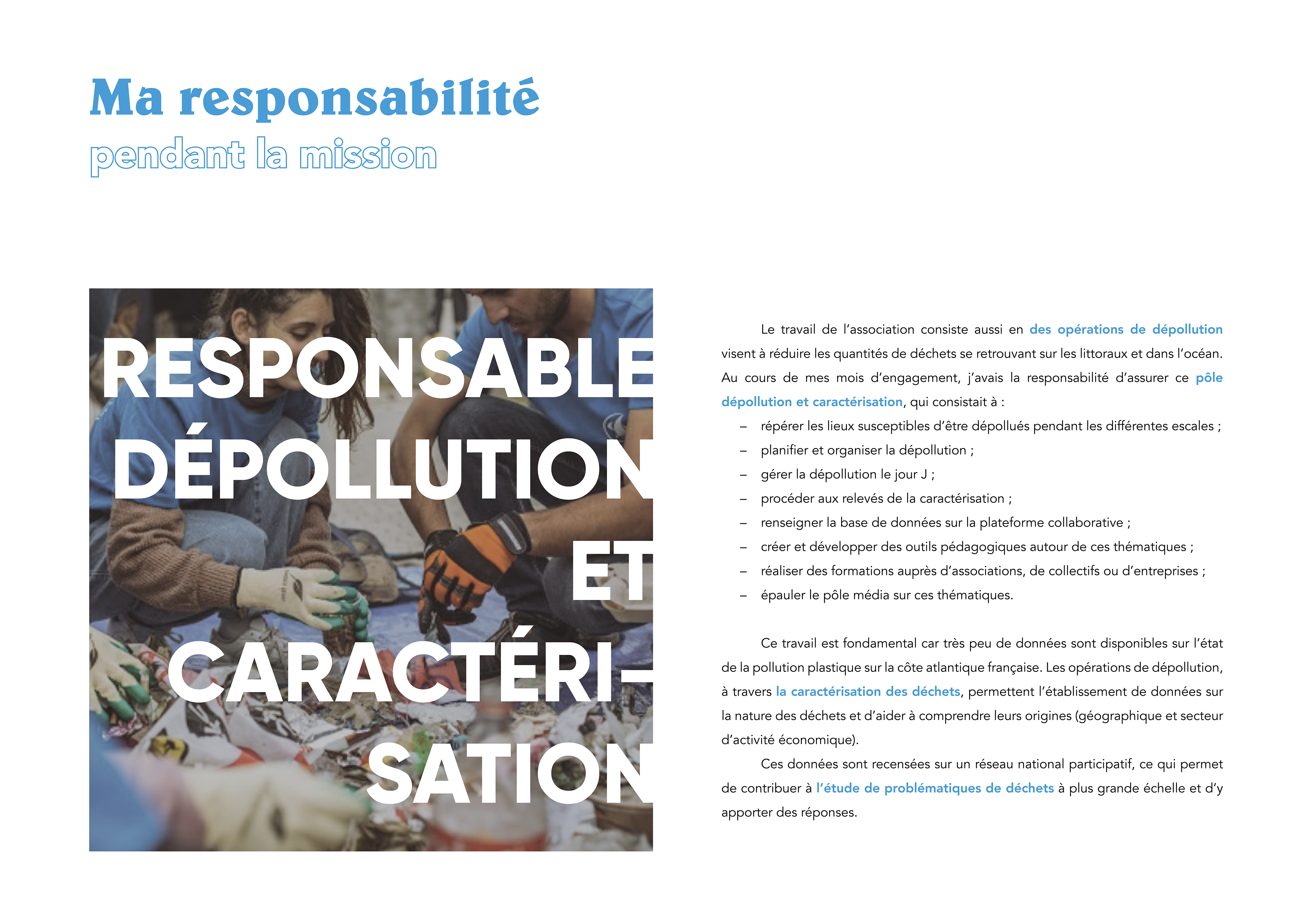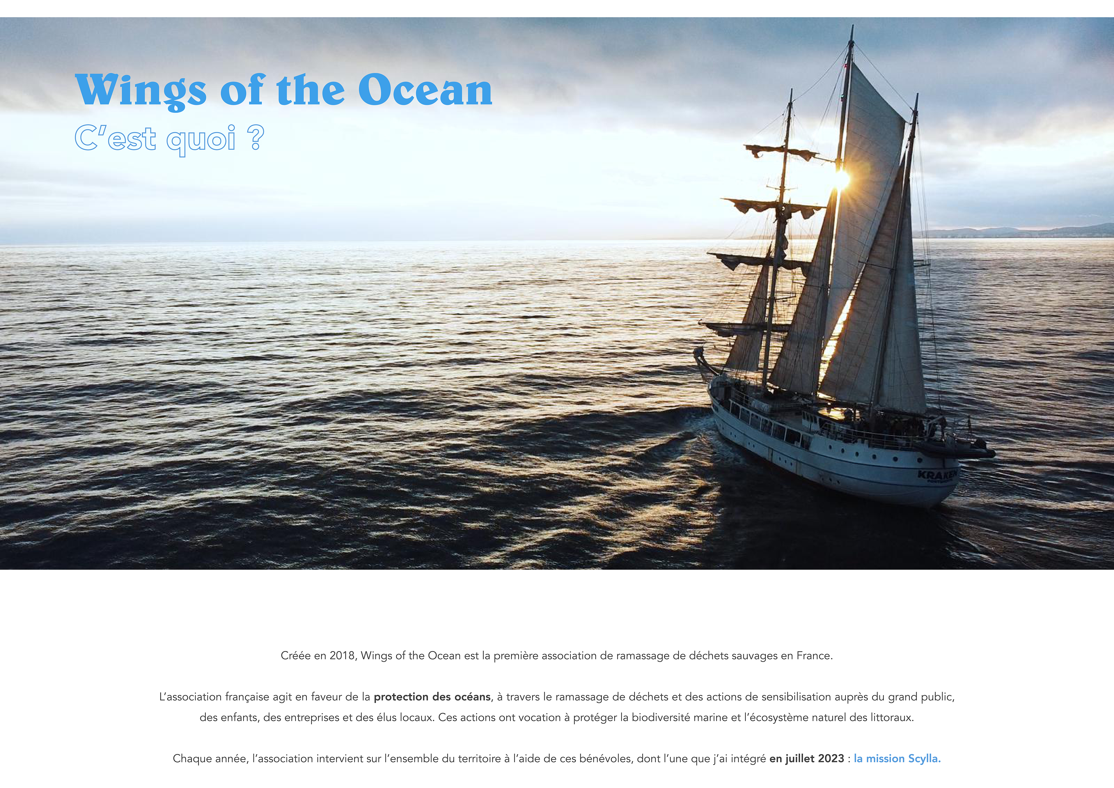 Présentation de mon engagement en tant que responsable dépollution et caractérisation dans l'une des plus grandes associations françaises, engagée pour la préservation de nos océans : Wings of the Ocean.